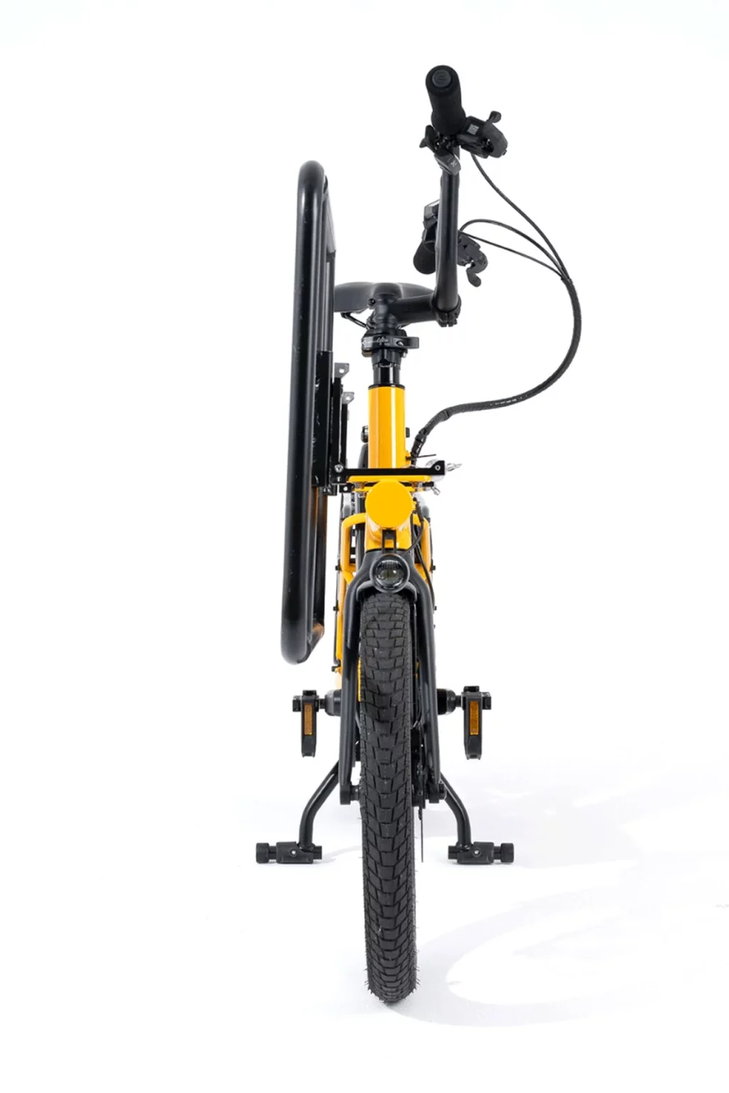 Le concept repose sur une architecture simple : un espace de chargement à l’avant pour les affaires, et une zone arrière dédiée aux passagers. Le vélo peut ainsi accueillir jusqu’à deux enfants, tout en conservant un format réduit, adapté aux contraintes de la ville. Cette double capacité en fait un outil de transport hybride, à mi-chemin entre le vélo utilitaire et le vélo familial.