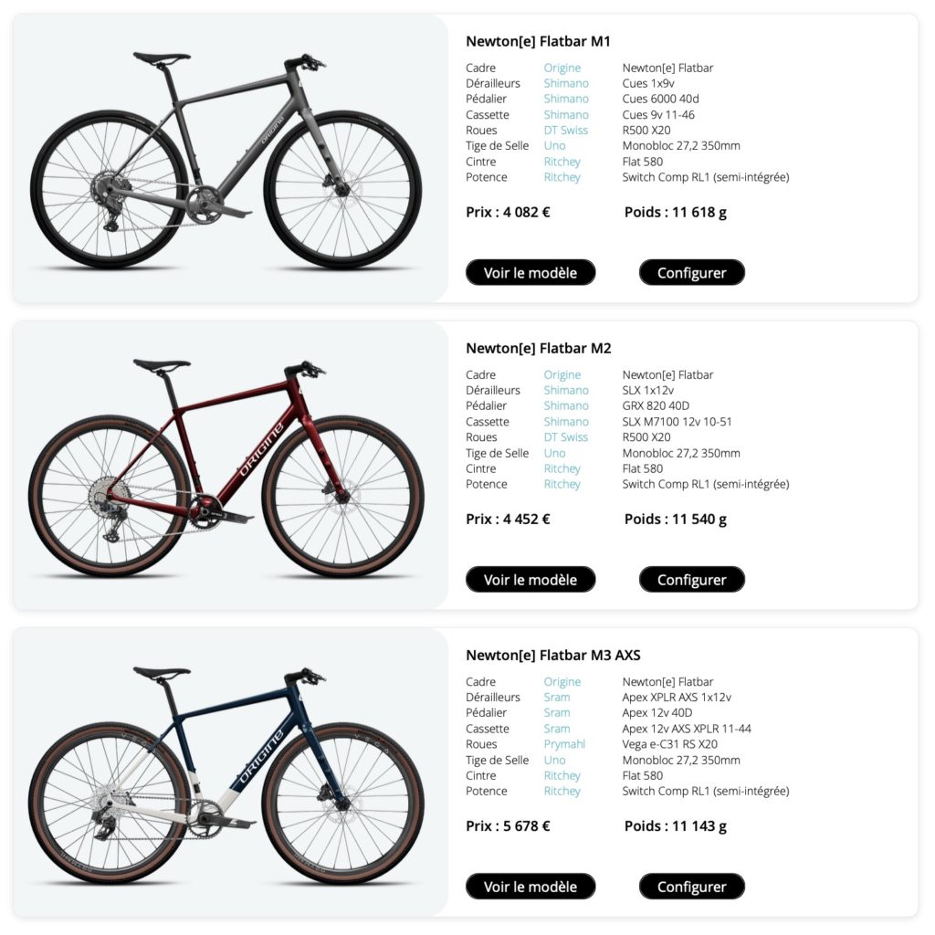 Enfin, le modèle Newton[e] Flatbar se contente de trois versions de base, mais toujours avec des dizaines d’options.