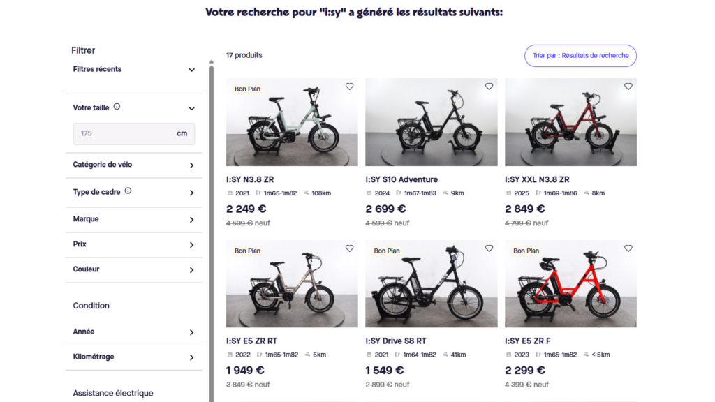 Si l’on vous en parle, c’est parce que la plateforme de vélos reconditionnés Upway vient de rentrer un petit stock de vélos de cette marque, dont la plupart n’ont pas dépassé les 10 km. Des vélos neufs (ou presque), vendus à prix cassés. Car en bonne marque premium allemande qui se respecte, i:SY pratique des tarifs assez élevés. Les vélos ici présentés affichent tous un prix catalogue supérieur à 4000 ou 4500 €. Mais les prix proposés par Upway sont fortement remisés, entre 2300 et 2850 €.