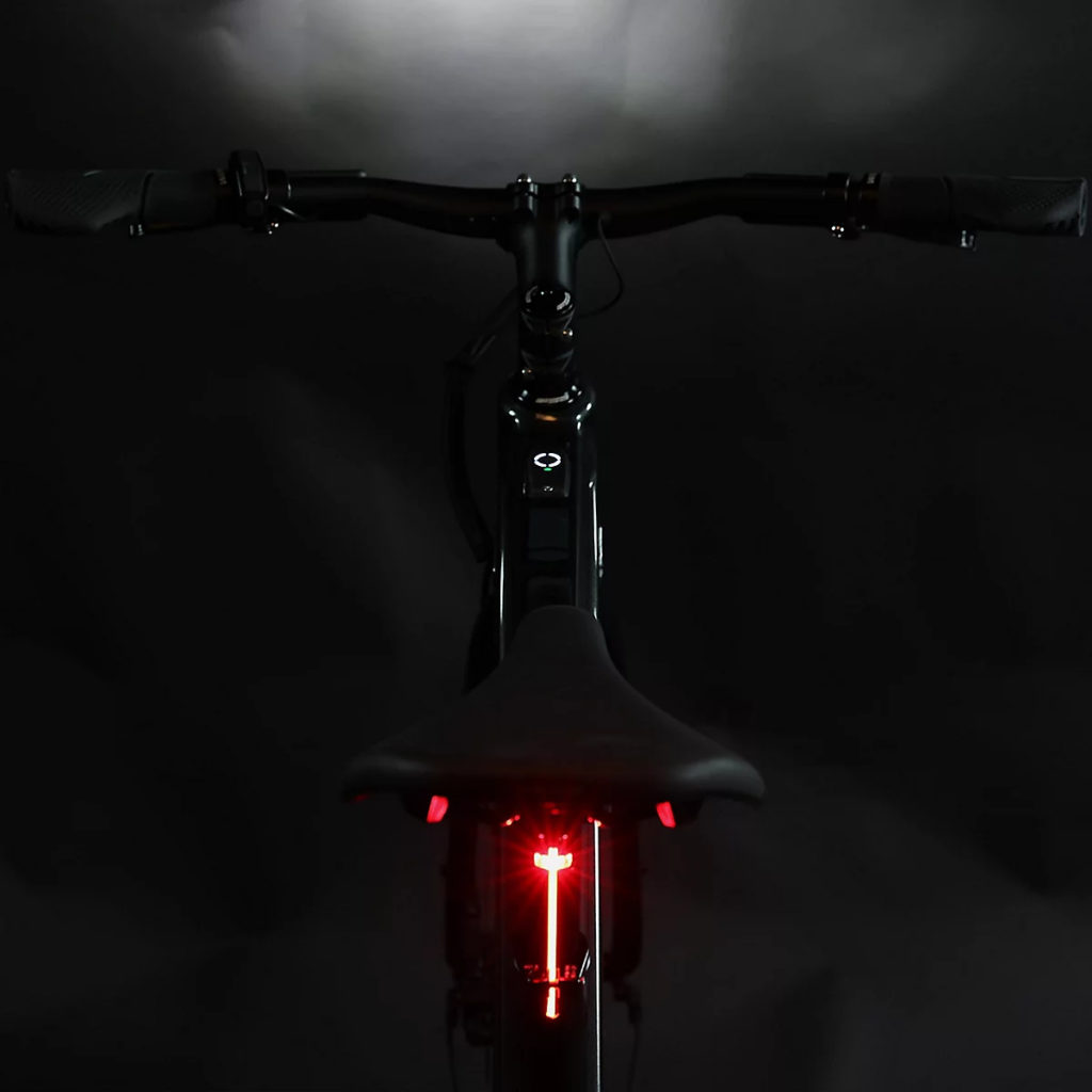 Ce vélo à la présentation moderne fait l’effort d’intégrer son éclairage avant dans son cintre, et son feu arrière dans la tige de selle. Le niveau d’intégration n’atteint pas ce que l’on retrouve sur les VAE premium, mais cela dénote d’un souci du détail que l’on ne connaît pas toujours sur ces équipements chez Intersport. Autre point modernisé : la connectivité Bluetooth, qui permet au vélo de verrouiller/déverrouiller automatiquement son moteur simplement en s’éloignant ou en s’approchant avec son téléphone dans la poche.