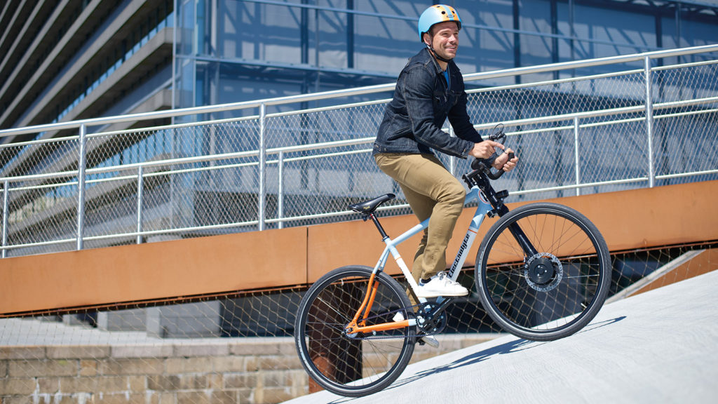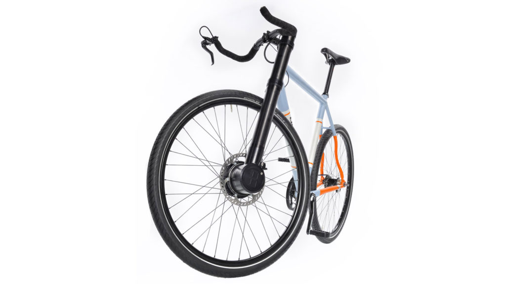• Le Electrolyte S4 E place moteur et batterie dans la roue avant et la fourche, un choix technique inédit.