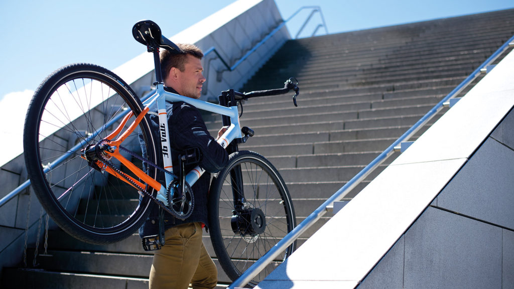 Sur un vélo la bonne répartition des masses est cruciale. Il en dépend de l’équilibre du vélo et des sensations qu’il offrira à son pilote. C’est d’autant plus vrai sur un vélo à assistance électrique, ou le cadre et les traditionnels composants doivent cohabiter avec les éléments souvent assez lourds composants le kit d’électrification.