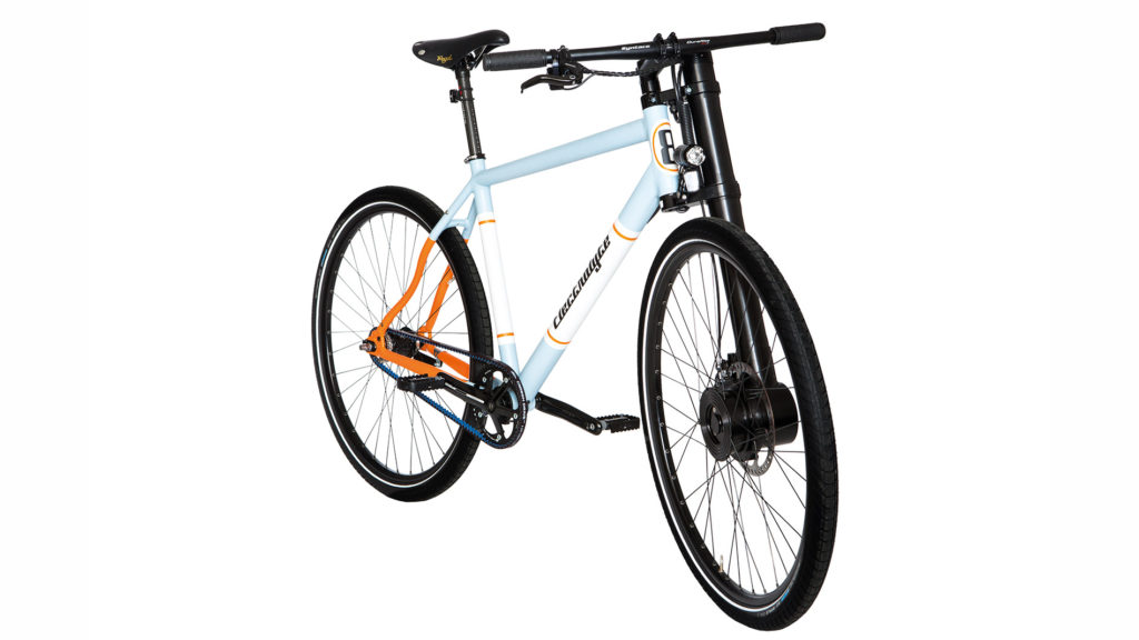 C’est en tout cas une curiosité, sachant que le vélo propose par ailleurs une transmission à courroie carbone Gates avec un moyeu à 2 vitesses intégrées et un freinage en rétropédalage, ou un moyeu à 11 vitesses avec des freins à disque classiques. Deux types de cintres sont proposés : plat ou bullhorn.