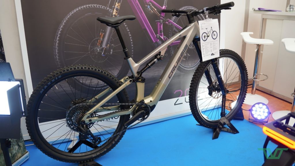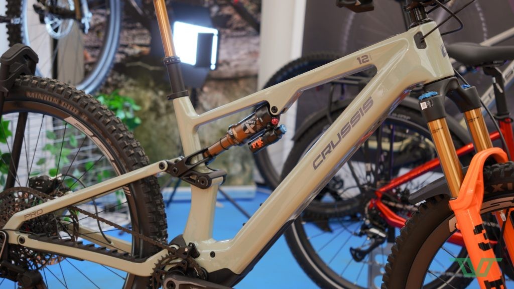 Les Crussis e-Full 11 sont basés sur des cadres en aluminium, tandis que les e-Full 12 passent à des cadres en carbone. Le montage est systématiquement en pneus 29 pouces Maxxis Assegai à l’avant et Maxxis Minion DHR II à l’arrière, en 2,5″ de section.