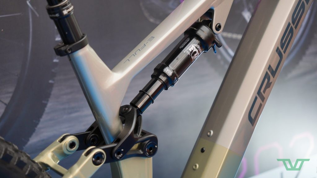 Le Crussis e-Full est un VTTAE all-mountain/enduro monté sur des suspensions de 160 mm à l’arrière comme à l’avant. La gamme démarre avec une fourche Fox AWL HD 36 Air et un amortisseur Fox Float Rhythm Evol LV pour le modèle e-Full 11.11. La version 12.11 Pro va grimper jusqu’à une fourche inversée Fox Podium 160 et amortisseur Fox Float X Live Valve Neo.